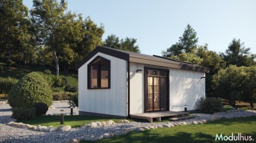 Pris fra 699,900kr 25-40kvmVelkommen til vår arkitektdesignede Minihus Camilla. Her inviteres du av flere vakre dobbeltdører i tre i 3-lags vinduer som gir en naturlig overgang mellom hus og hage.